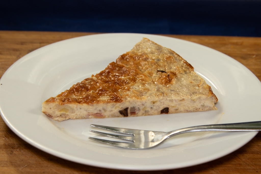 Also dachte ich mir, es müsste sich auch eine Tarte ohne einen Boden zubereiten lassen. Man lässt also einfach den Mürbeteig oder den Hefeteig weg und backt nur die Füllmasse.