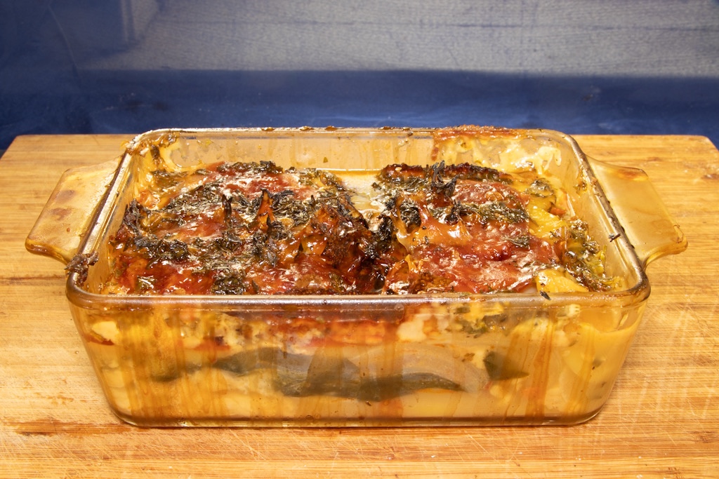 Auflaufform auf mittlerer Ebene die oben angegebene Zeit backen.